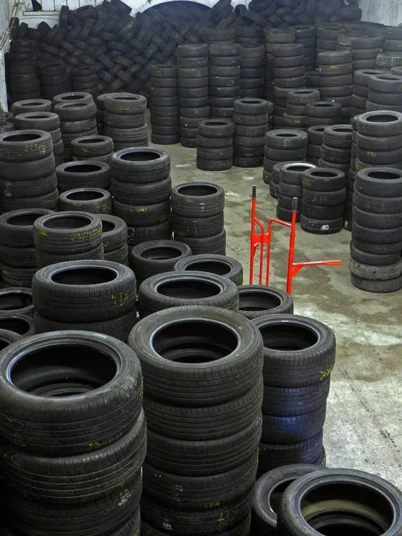 umbes 20 000 survekatsetatud kasutatud rehvi.